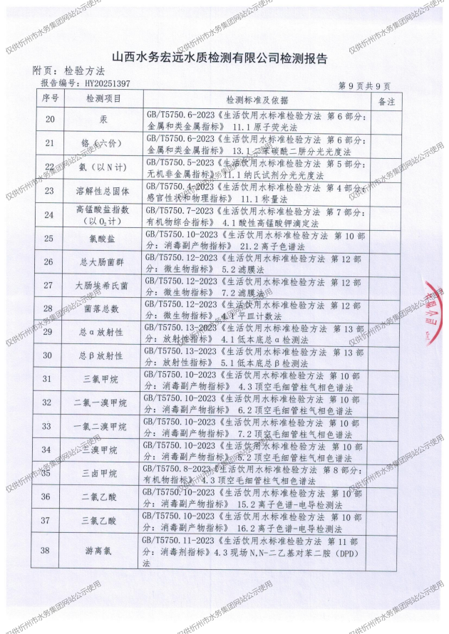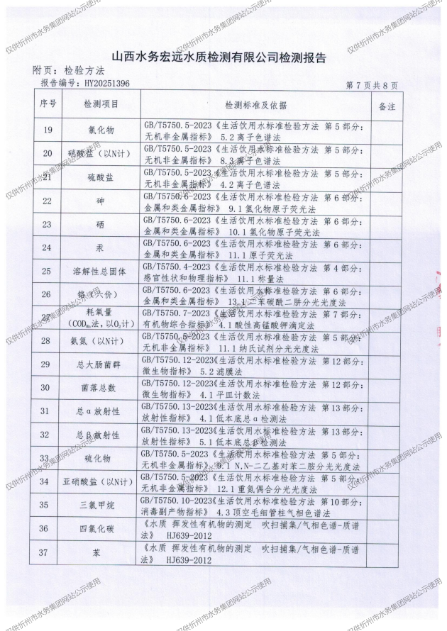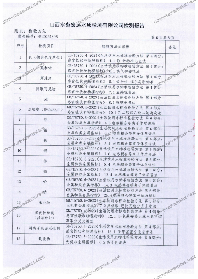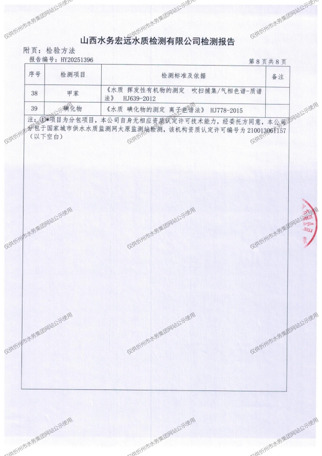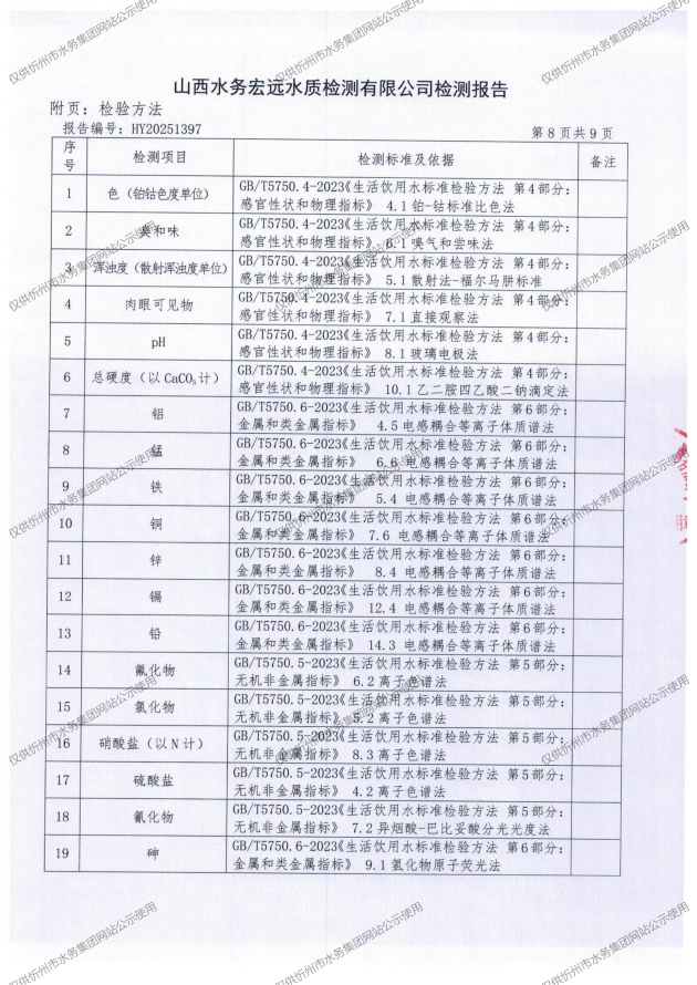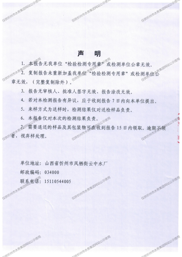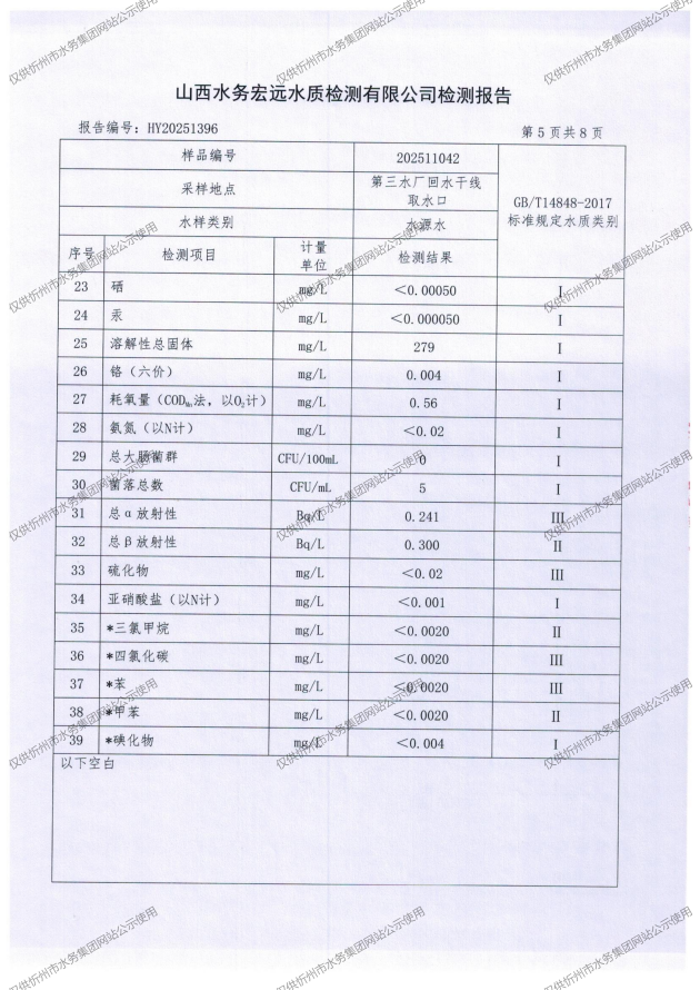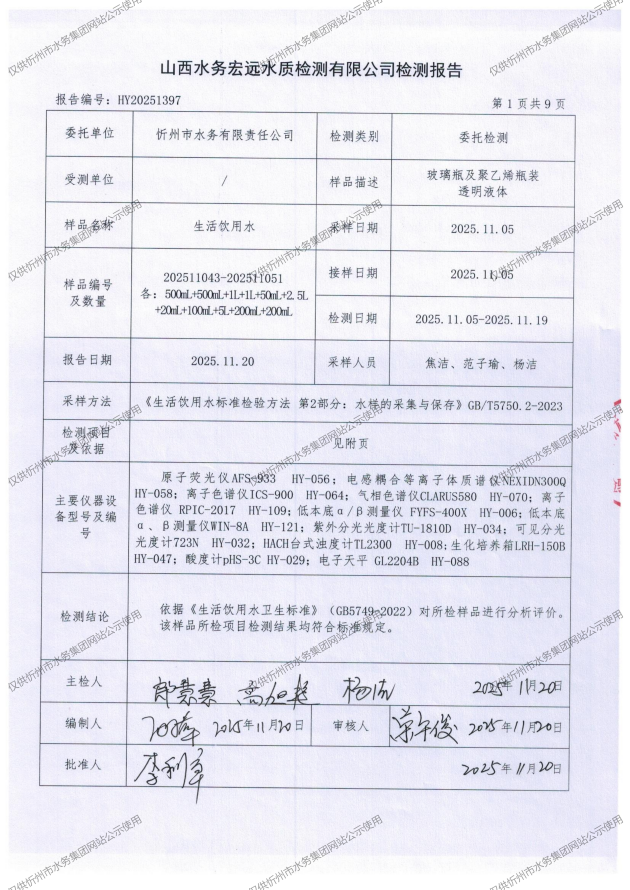 忻州城區(qū)公共供水水源水、出廠水、管網水、管網末梢水2025年11月份水質信息公示