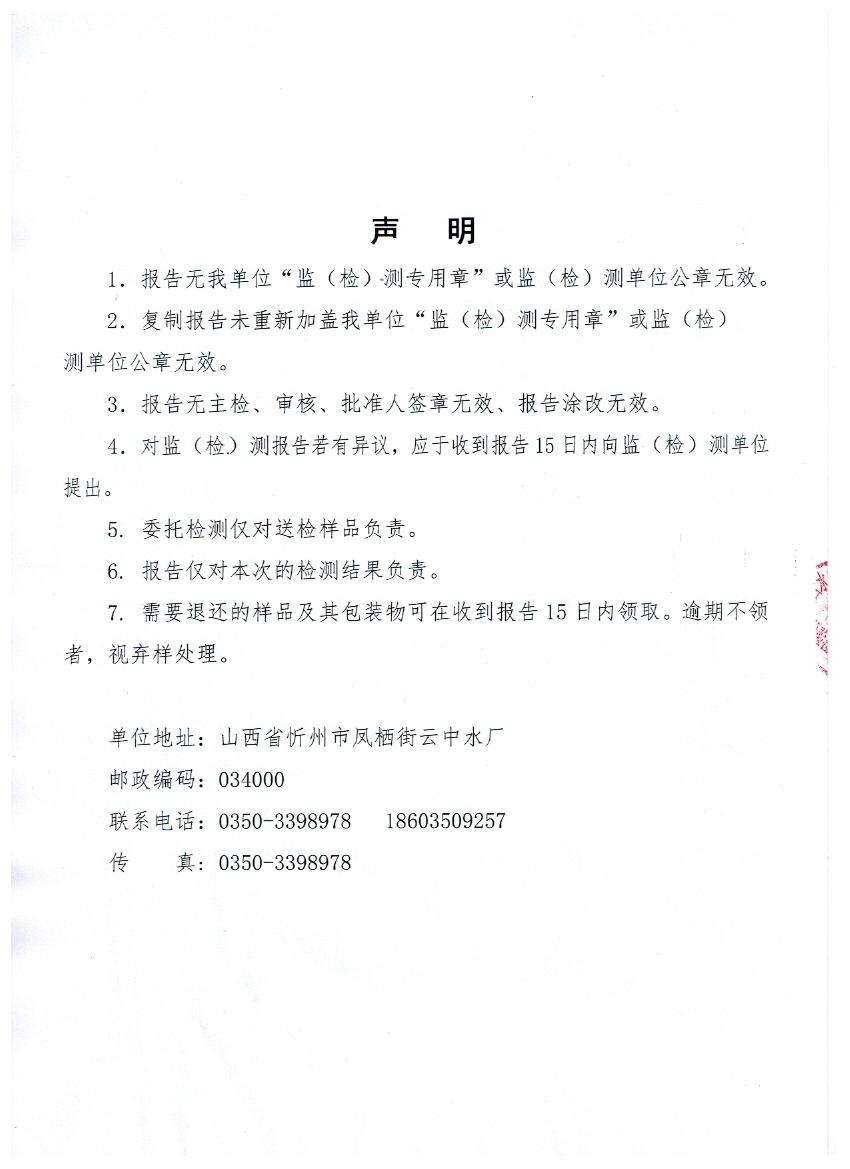 2019年忻州城區(qū)公共供水南水廠、三水廠、云中水廠出廠水106項水質(zhì)全分析