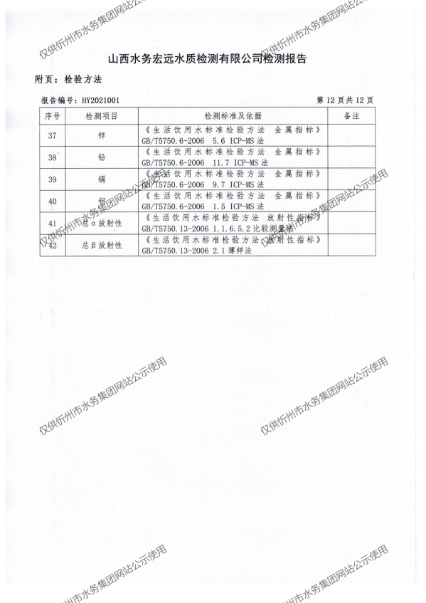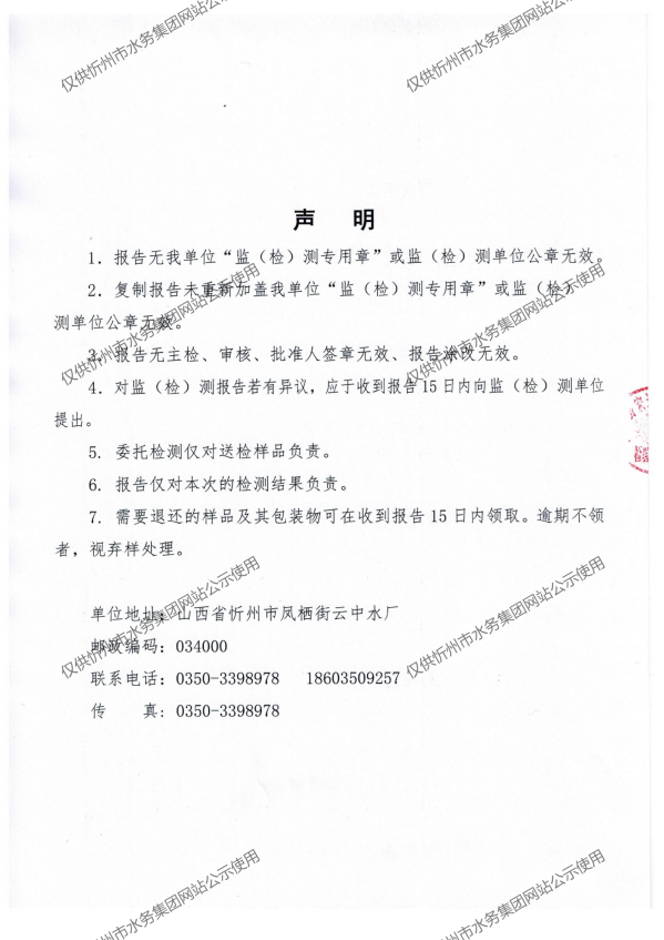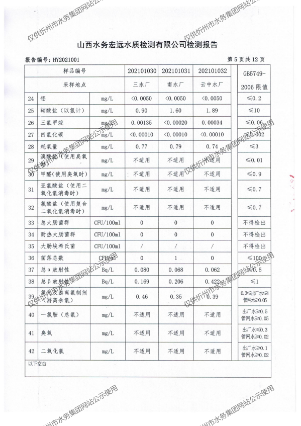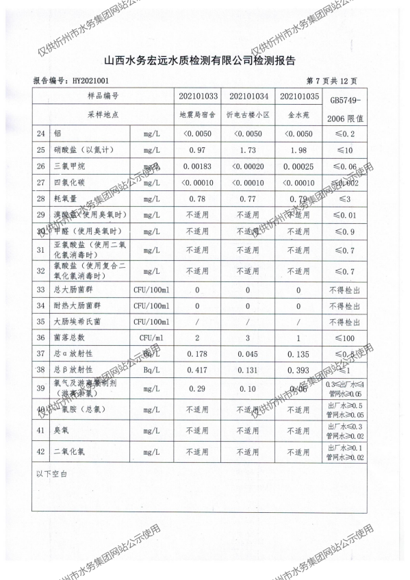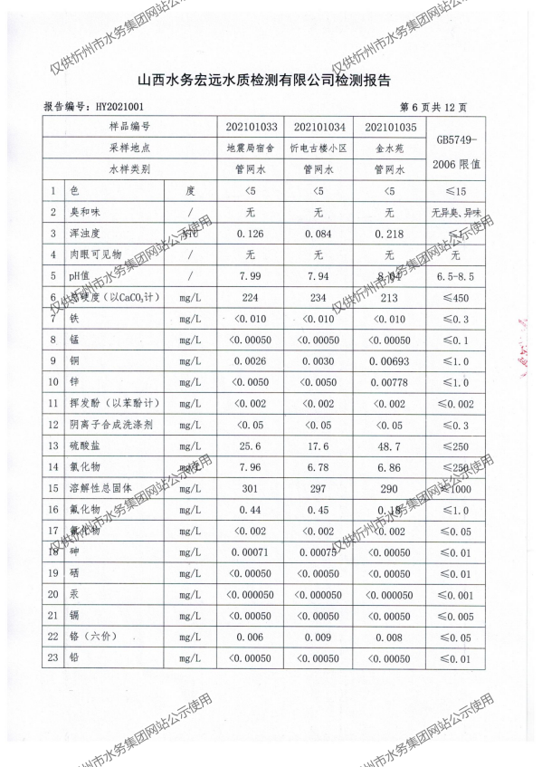 忻州城區(qū)公共供水水源水、出廠水、管網(wǎng)水、管網(wǎng)末梢水2021年1月份水質(zhì)信息公示